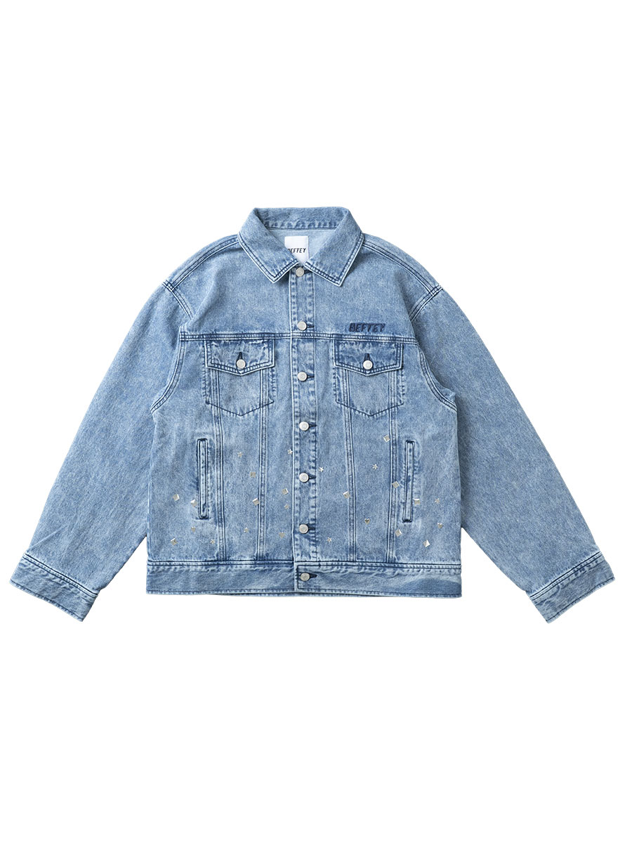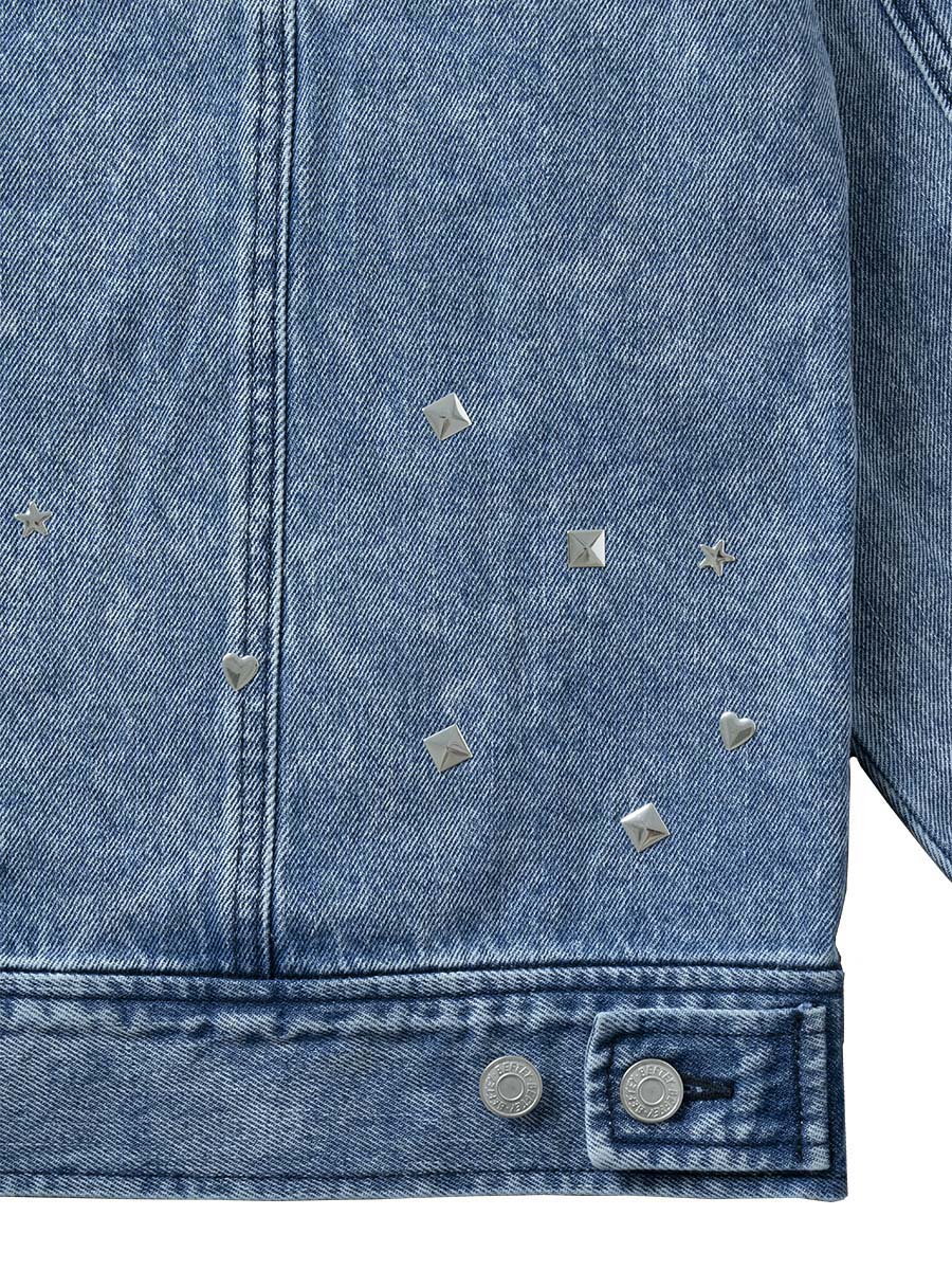 スタッズデザインが存在感のあるデニムGジャン。