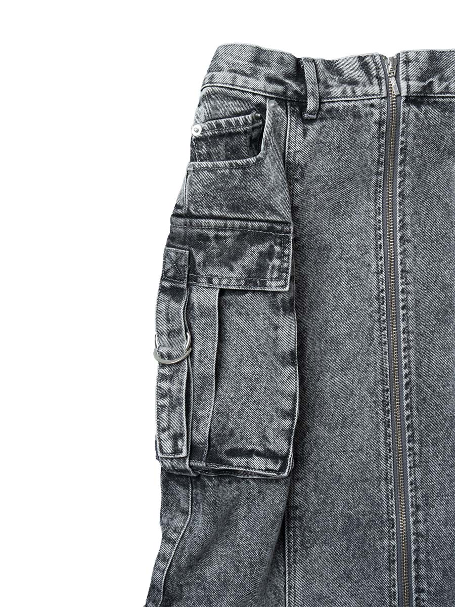 ジップフロントデニムスカート(ブラック)