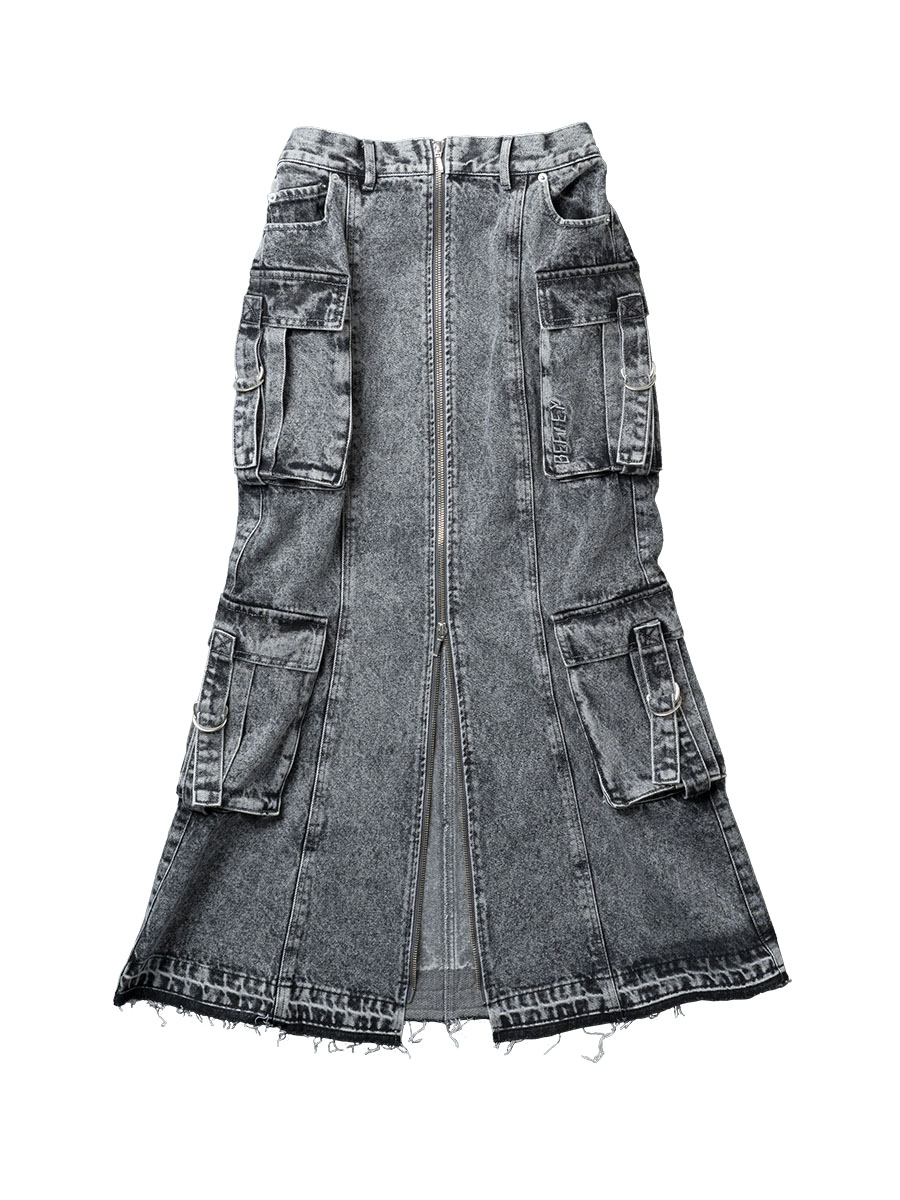ポケットにはロゴ刺繍をプラスし、コーデの主役になるデザインデニムスカートです。