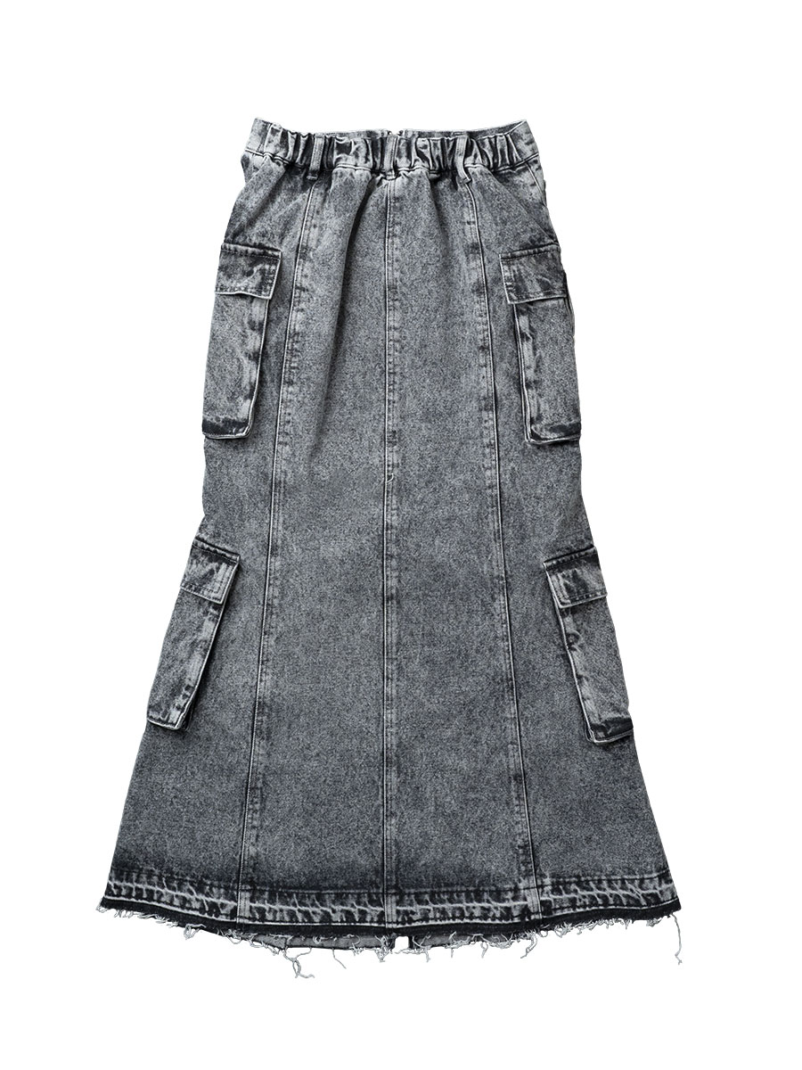 ポケットデザインのデニムロングスカート。