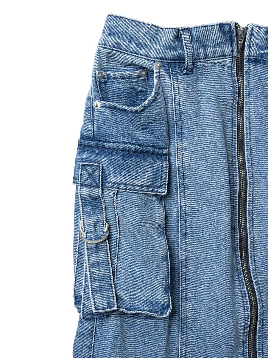 ジップフロントデニムスカート(ブルー)