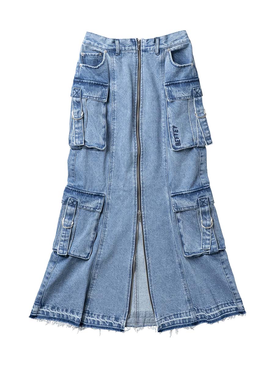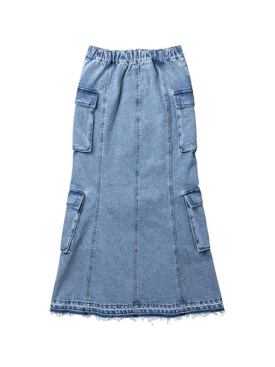 ポケットデザインのデニムロングスカート。