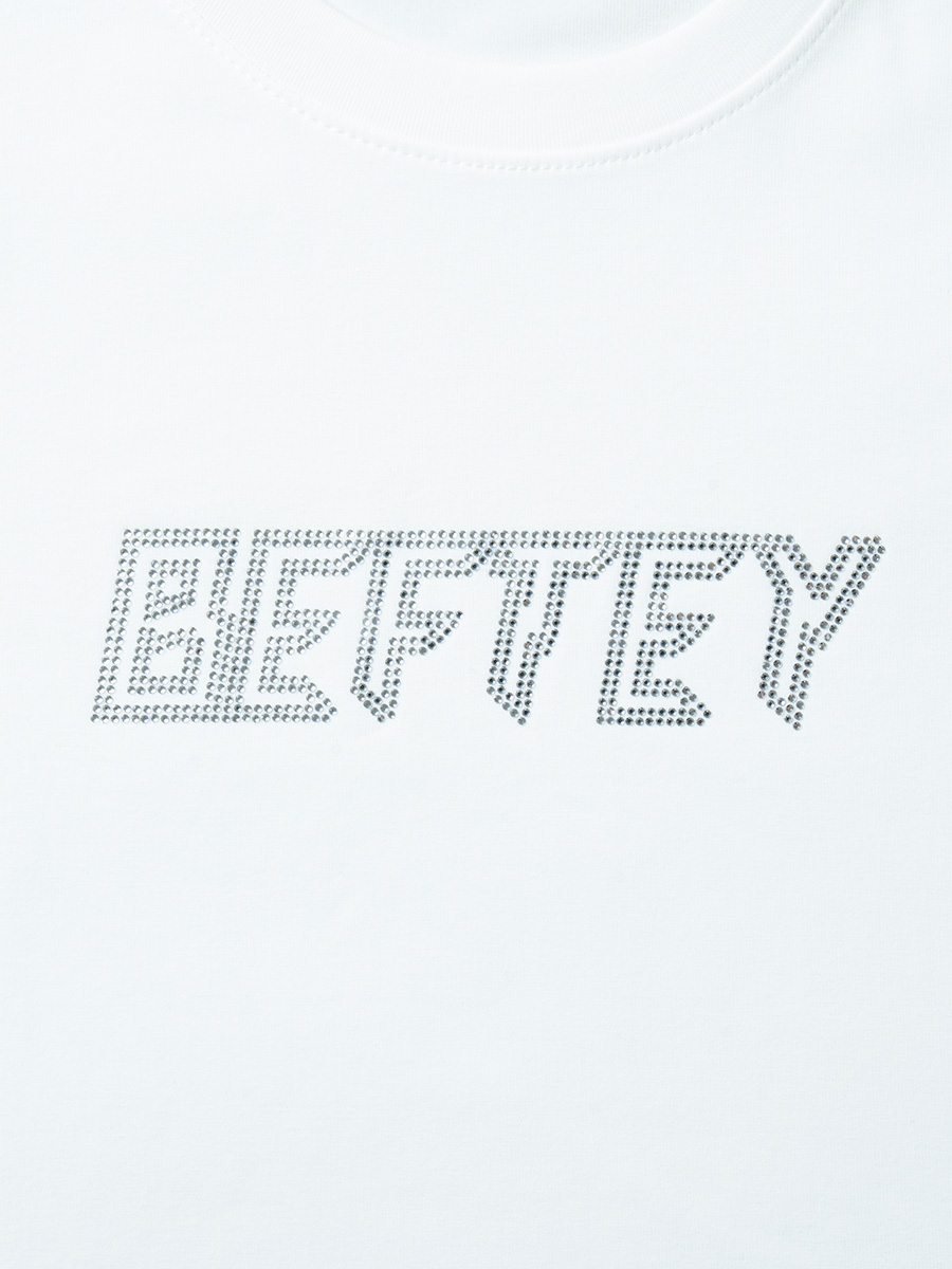 キラキラと輝くラインストーンでロゴを表現した、コーデのアクセントになる1枚です。