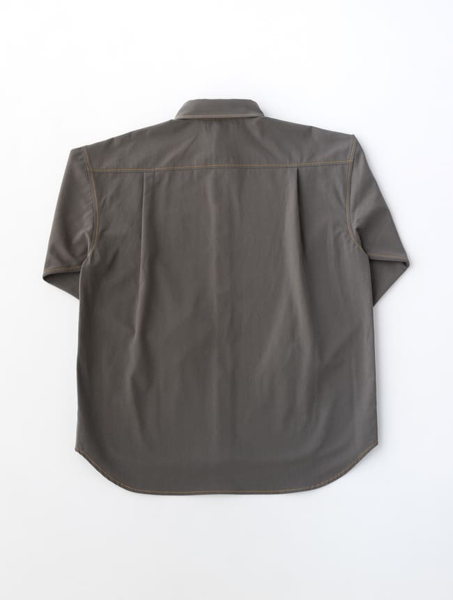 コットン素材のシャツ。シルエットはビッグサイズになっており、男女共にゆったりと着用頂けます。胸にはウシくんワッペンが付きます。太いステッチの配色がアクセントになっています。【混用率】