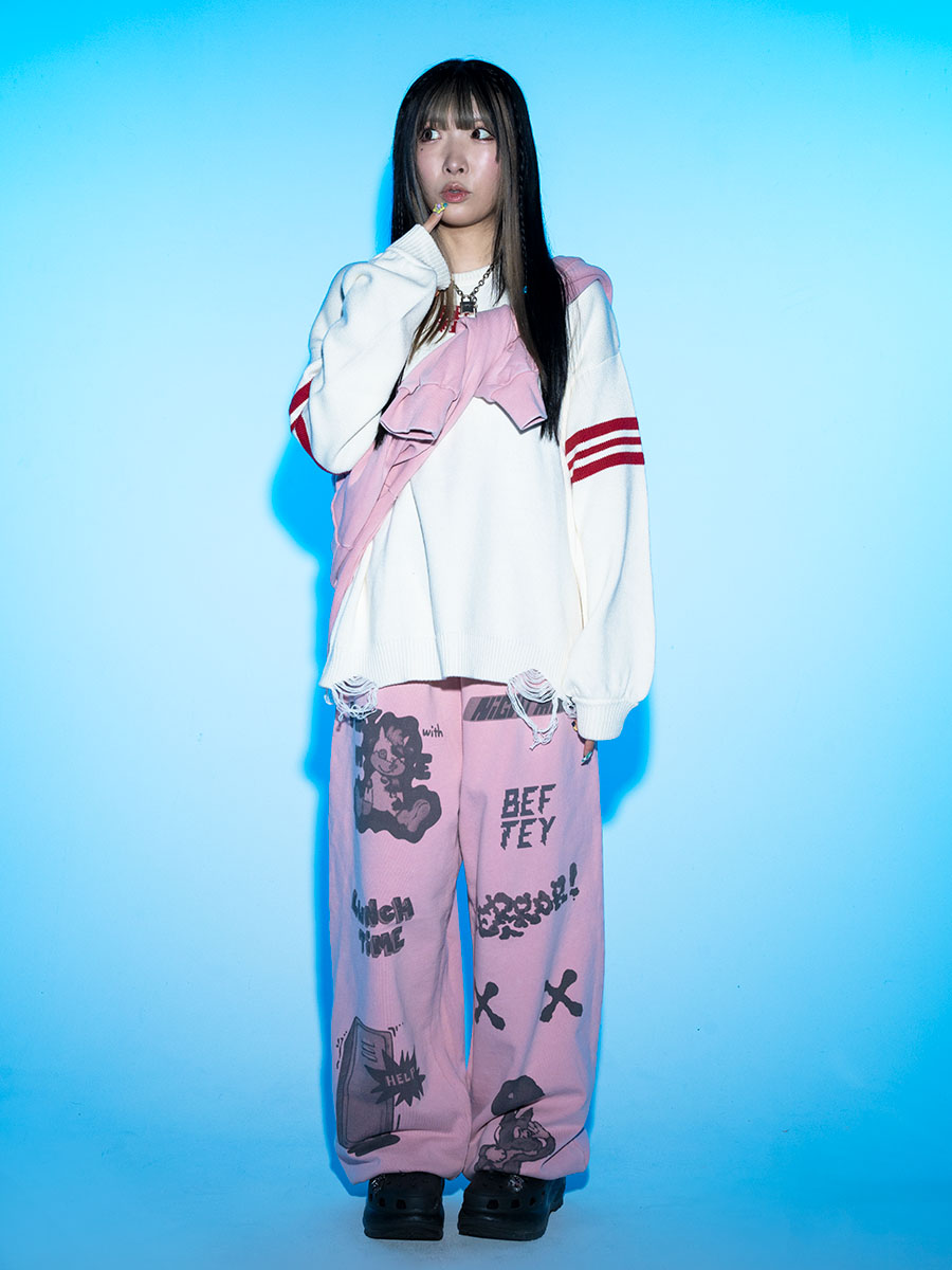 BEFTEYロゴがポイントのニット。袖のラインがスポーティーらしさをプラス。裾のダメージ加工がBEFTEYらしい可愛すぎないポイントに。1枚持っていれば着回し力抜群のアイテムです!【サイズ】