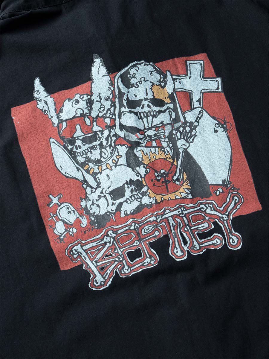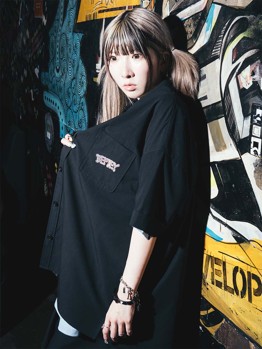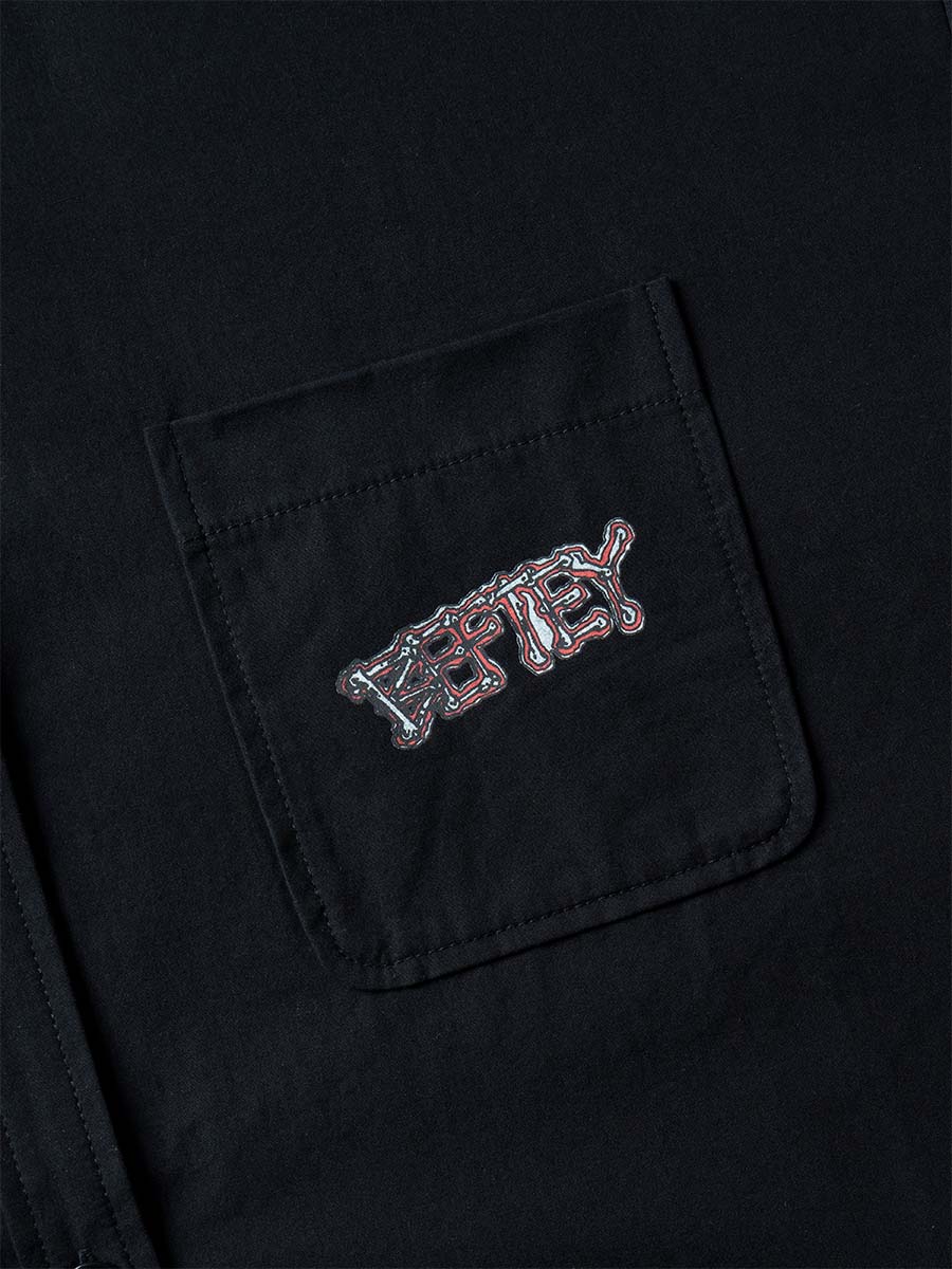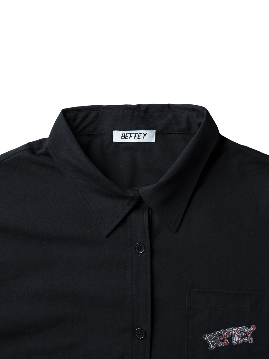 オーバーサイズシャツとハーフパンツのセットアップ。左胸ポケットには骨モチーフBEFTEYロゴプリントが、背面にバンTとお揃いのプリントが入っています。シャツ1枚で他のアイテムとスタイリングしても◎セットアップで着るとよりBEFTEY感を楽しめます。