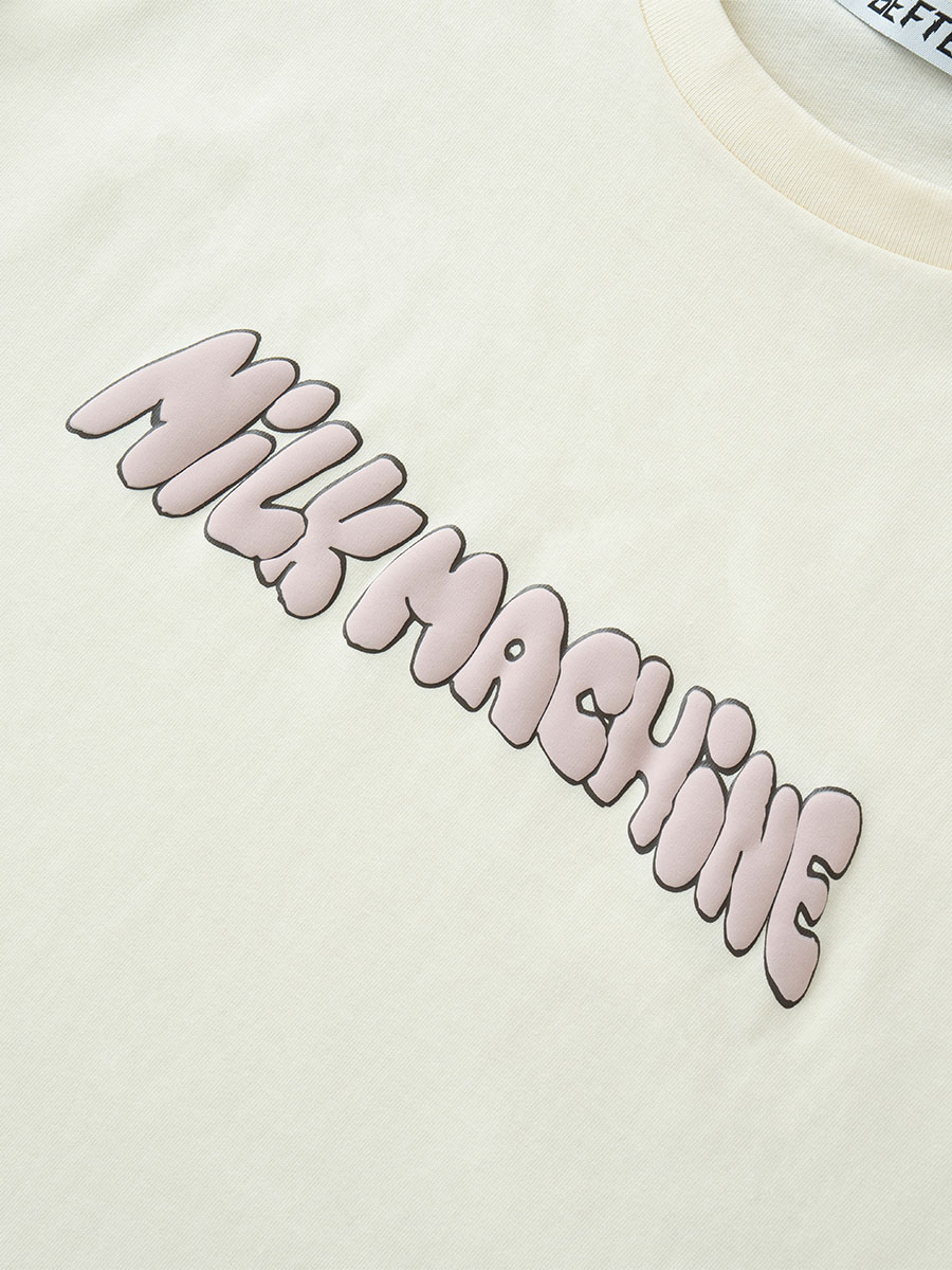 今回のテーマ「MILK MACHINE」のロゴが入ったTシャツ。程よくゆったりしたシルエットでユニセックスでの着用もおすすめです。デニムやパンツ、スカートとの相性も抜群で、1枚で存在感のあるスタイリングが完成します。