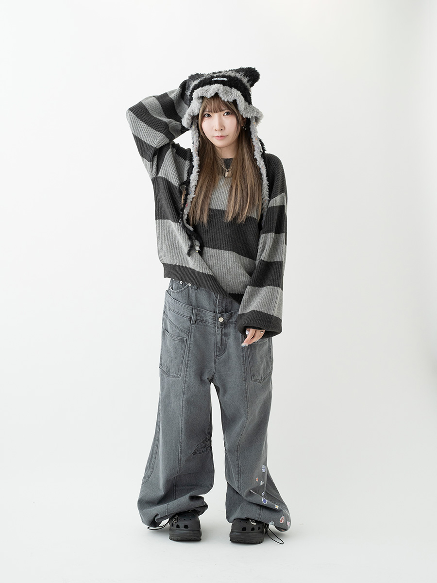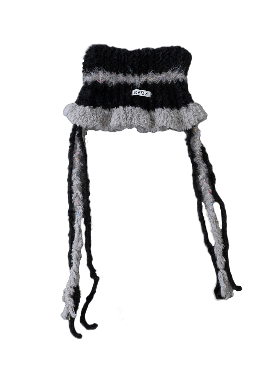 ふわふわの素材感がたまらない、シーズンムードたっぷりのニット帽。フリルデザインと、サイドに垂れた糸のディテールがポイントで、ゆるっとラフにかぶるだけでこなれ感を演出。センターにはブランドネームを配置し、ストリートなアクセントをプラス。シンプルなスタイリングにプラスするだけで、一気に個性と可愛さを引き出してくれる主役級アイテム。