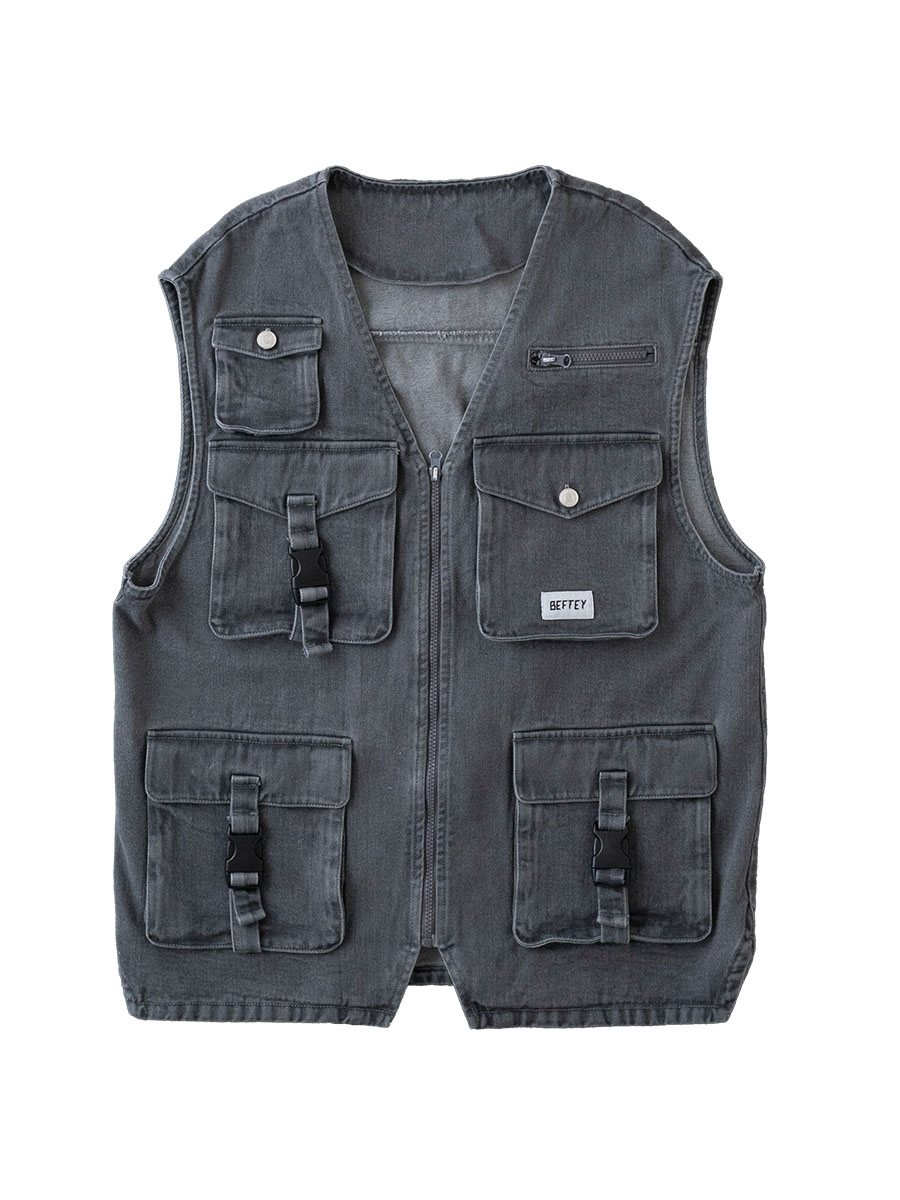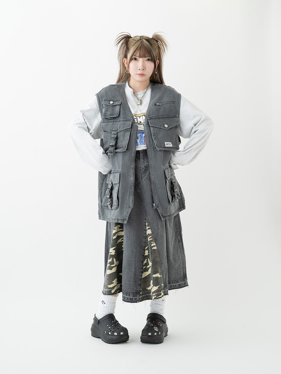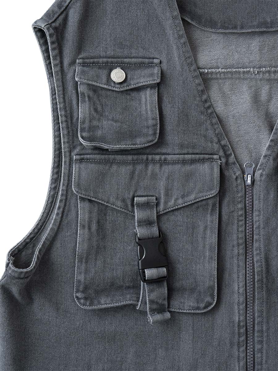ポケット×バックルディテールのミリタリーとストリートmixのユーティリティベスト。フロントはファスナー仕様で、ラフに羽織るだけでストリート感のある旬なレイヤードスタイルが完成。収納力も抜群で、アウトドアからストリートまで幅広く活躍。カラーはブラック、迷彩、グレーデニムの3色展開。