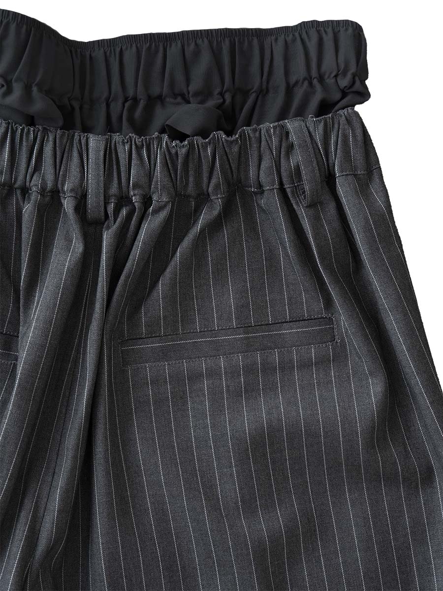 インナーパンツを重ねたようなデザインが印象的なハーフパンツ。別布を切り替えたウエストデザインがスタイリングのアクセントに。ほどよくルーズなシルエットで、ストリートにもカジュアルにもハマる万能ハーフパンツ。同素材のジャケットと合わせれば、統一感のあるセットアップコーデが完成します。