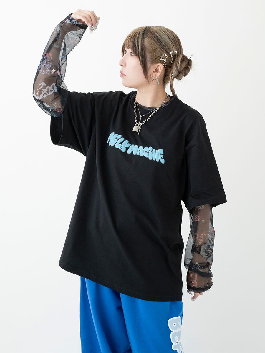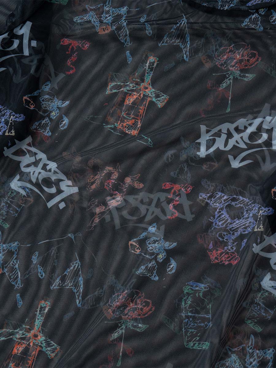 オリジナルプリントのシアートップス。透け感とグラフィックのバランスが絶妙で、Tシャツのインナーとしてもレイヤードの主役としても着こなしを楽しめます。タイトすぎない程よくゆとりのあるシルエットで、肌なじみも快適。迷彩柄は24AWで登場した、よく見たらうしくんが隠れた迷彩柄です。