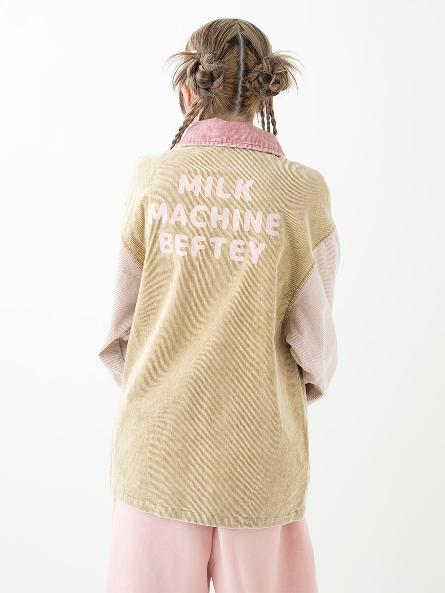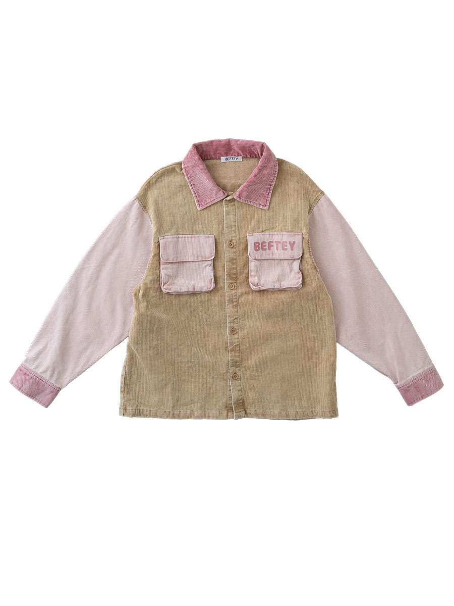 カラーブロッキングコーデュロイシャツ。素材の風合いと、衿・袖・身頃を異なる色で切り替える大胆なカラーブロッキングがシンプルながら1枚で主役になるデザインです。バックにはロゴプリントが入っておりストリート感をプラス。ゆったりとしたシルエットで、カジュアルにもストリートにも◎