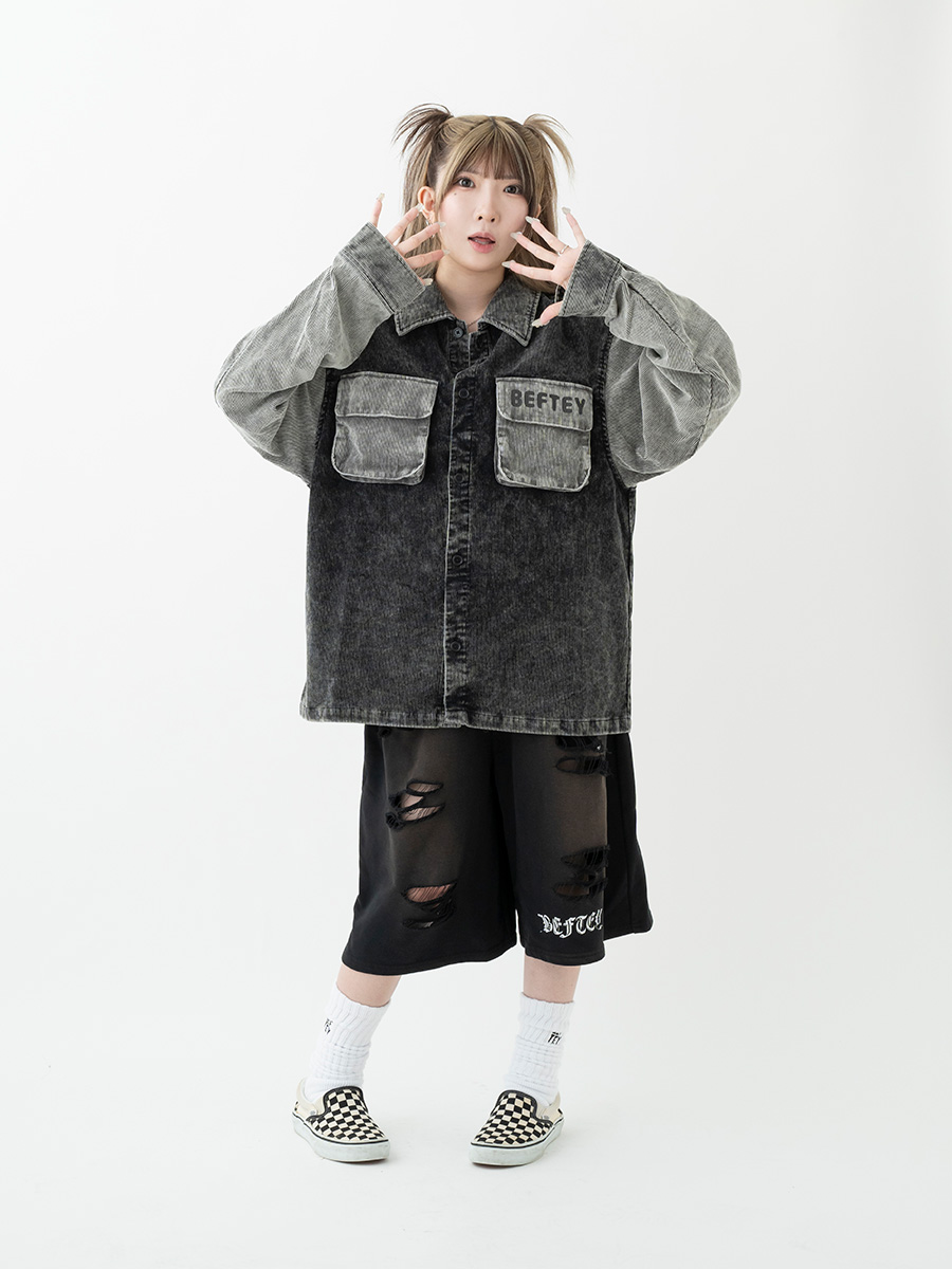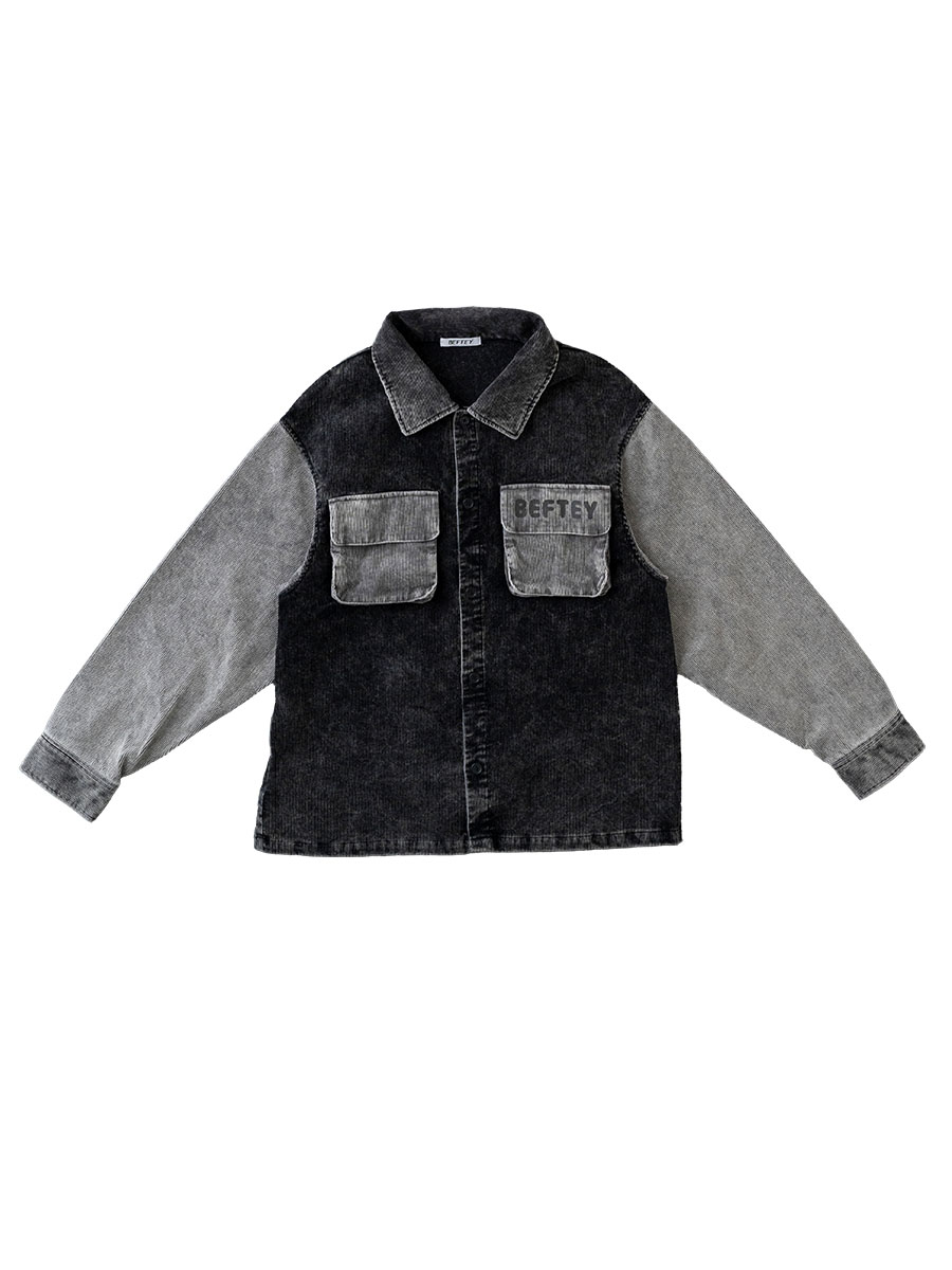 カラーブロッキングコーデュロイシャツ。素材の風合いと、衿・袖・身頃を異なる色で切り替える大胆なカラーブロッキングがシンプルながら1枚で主役になるデザインです。バックにはロゴプリントが入っておりストリート感をプラス。ゆったりとしたシルエットで、カジュアルにもストリートにも◎