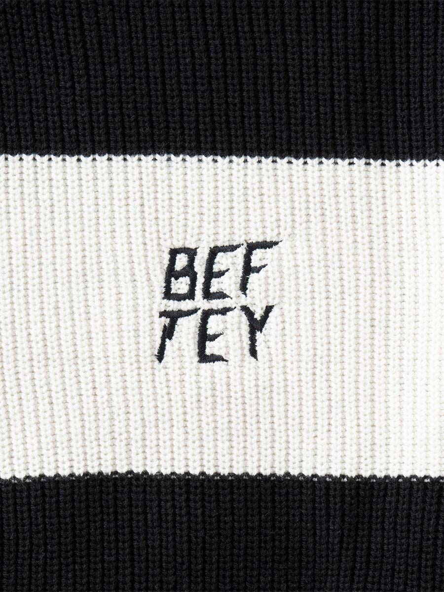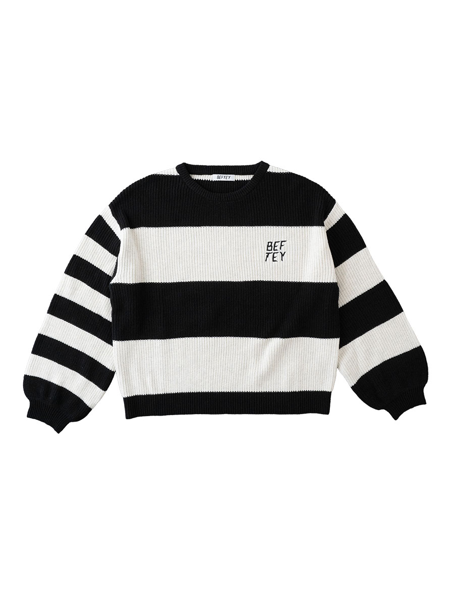 色々ピッチのボーダーニット。身頃と両袖で異なるボーダーピッチを組み合わせた、ちょっぴりひねりの効いた一枚。左胸にはさりげなくロゴ刺繍をプラス。程よくルーズなシルエットで、デニムやパンツ、スカートとの相性も抜群で、いつものコーデに抜け感をプラスしてくれます。