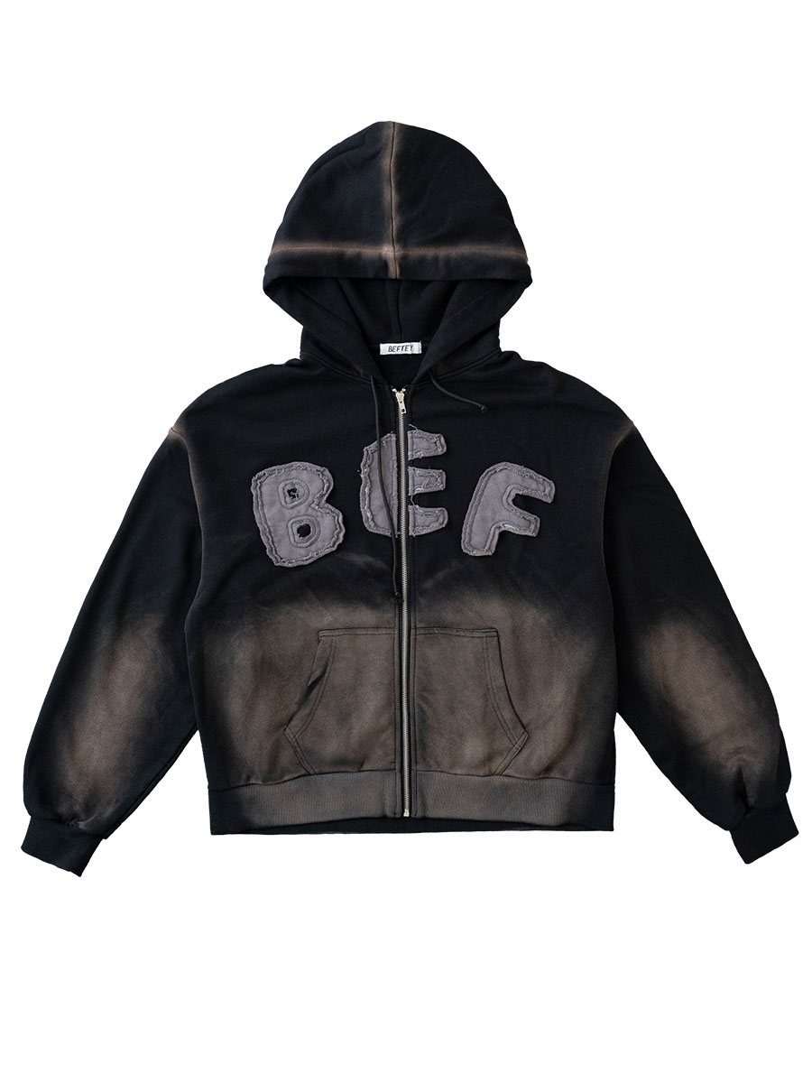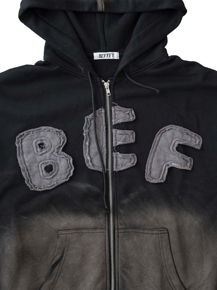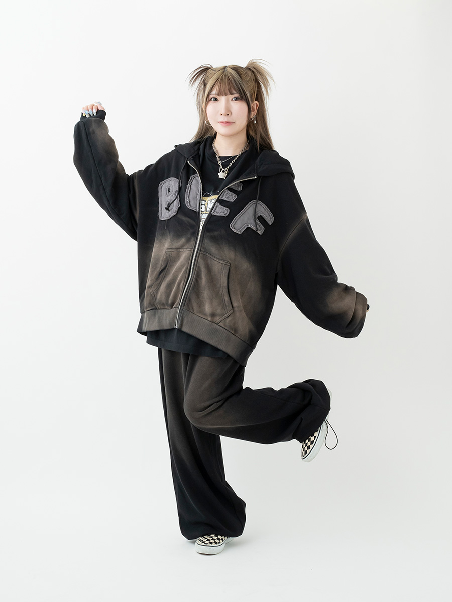 切り抜きロゴが入ったジップアップパーカー。胸元のロゴは、2枚の生地を重ねて大胆にカットオフ。ラフな切りっぱなし仕上げと配色デザインで存在感のあるアクセントに。ほどよくルーズなシルエットで、羽織るだけでコーデを一気にストリートモードに引き上げ、デニムやパンツとの相性も抜群◎同シリーズのスウェットパンツとのセットアップコーデがおすすめです。