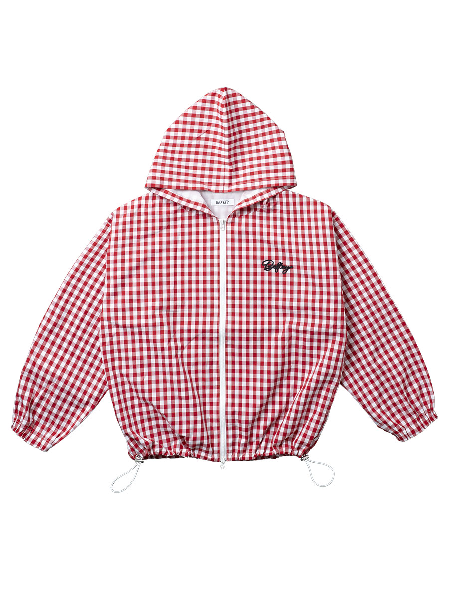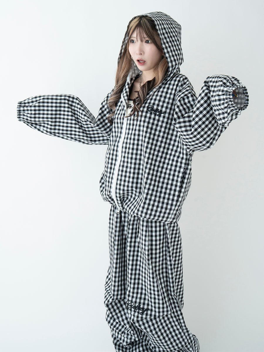 ギンガムチェックライトフードパーカー(ブラック)