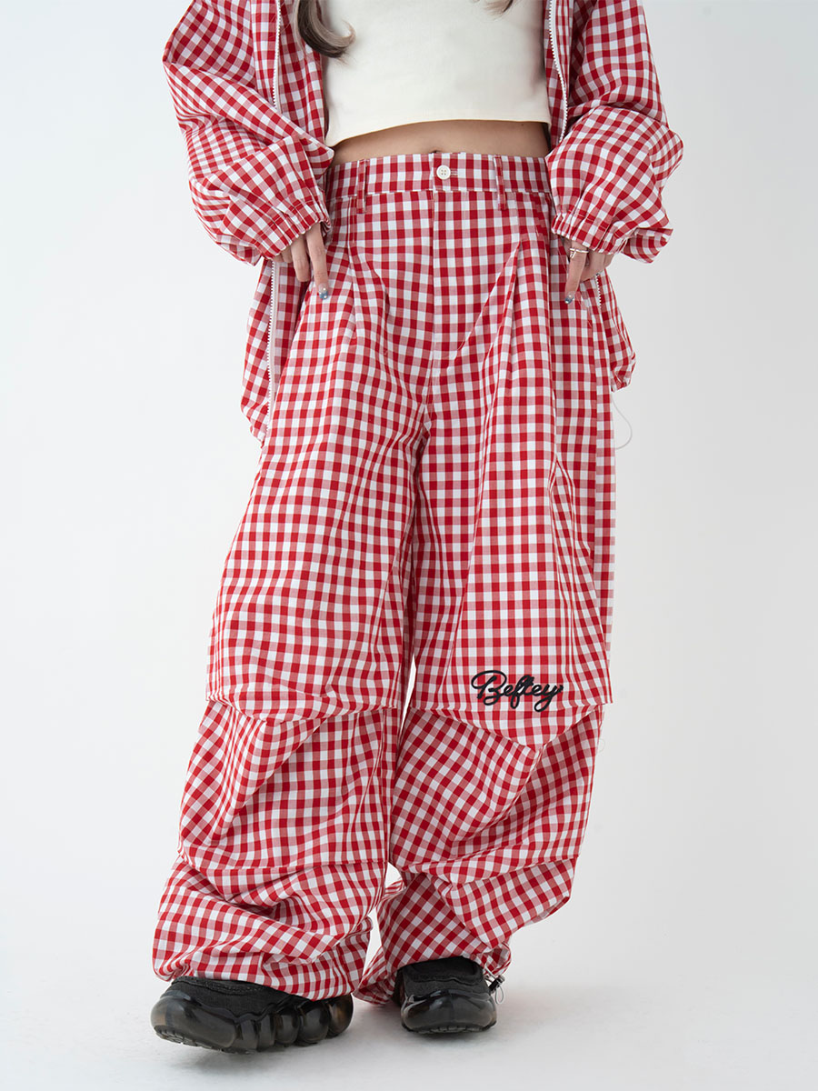 ギンガムチェックロングパンツ(レッド)