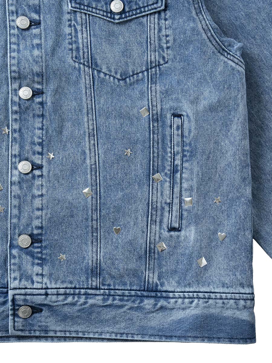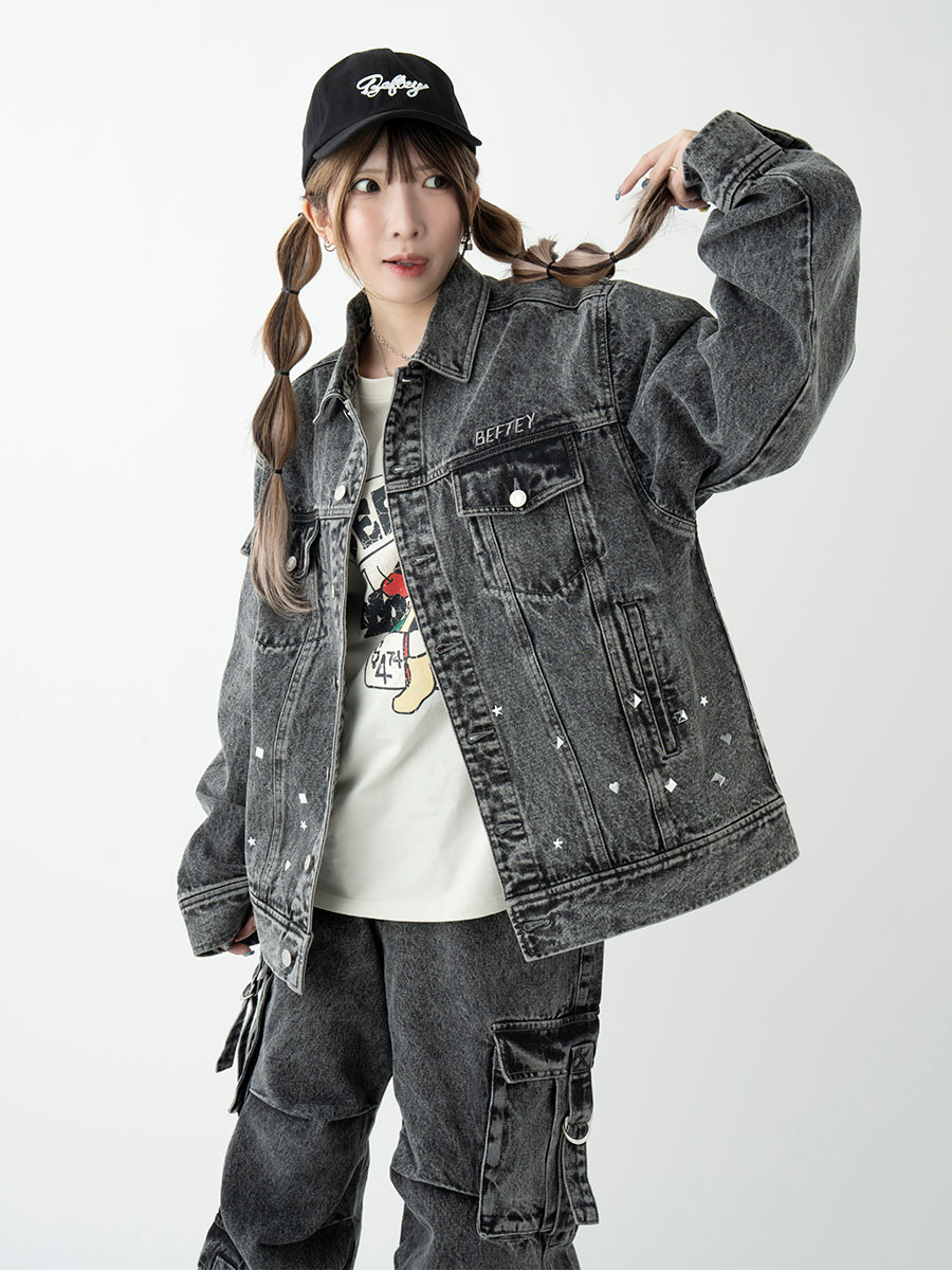 スタッズデザインが存在感のあるデニムGジャン。