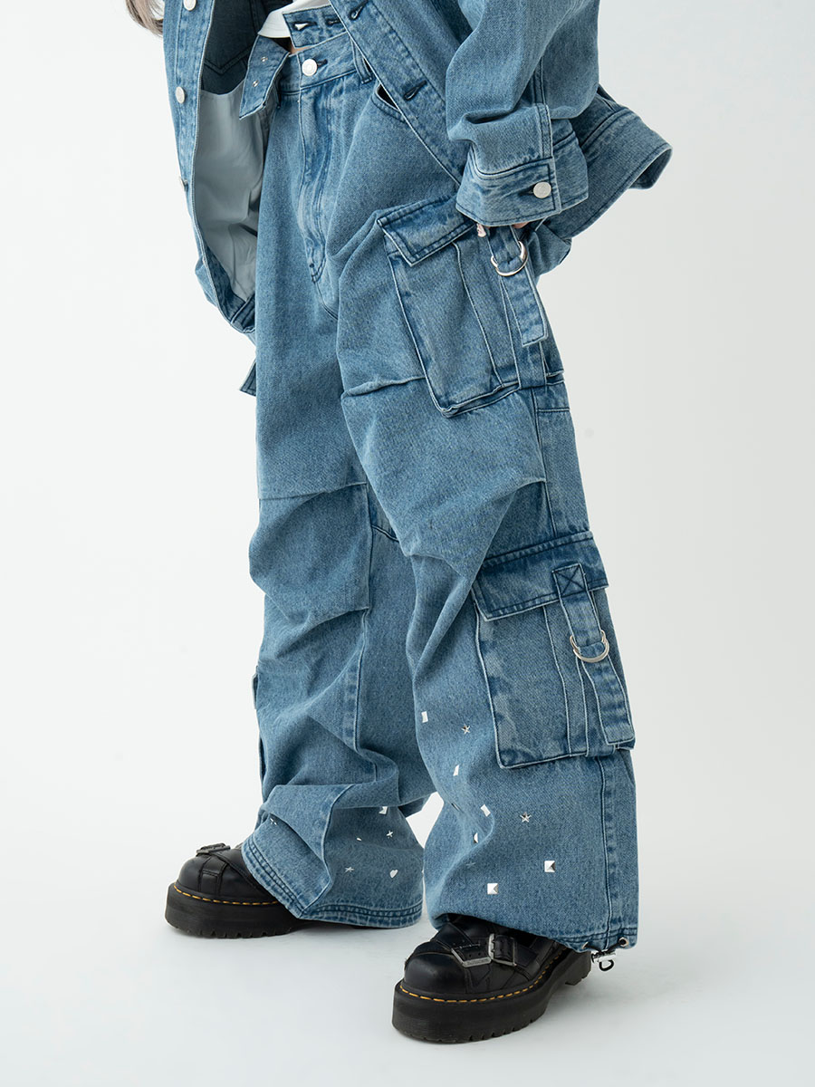 復刻ぽけふぉースタッズワーカーパンツ(ブルー)