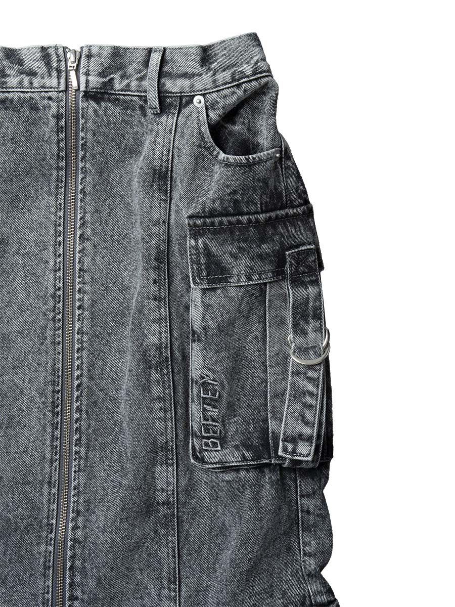 ジップフロントデニムスカート(ブラック)