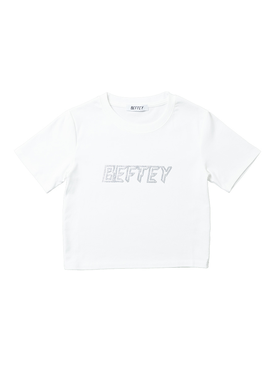 キラキラと輝くラインストーンでロゴを表現した、コーデのアクセントになる1枚です。