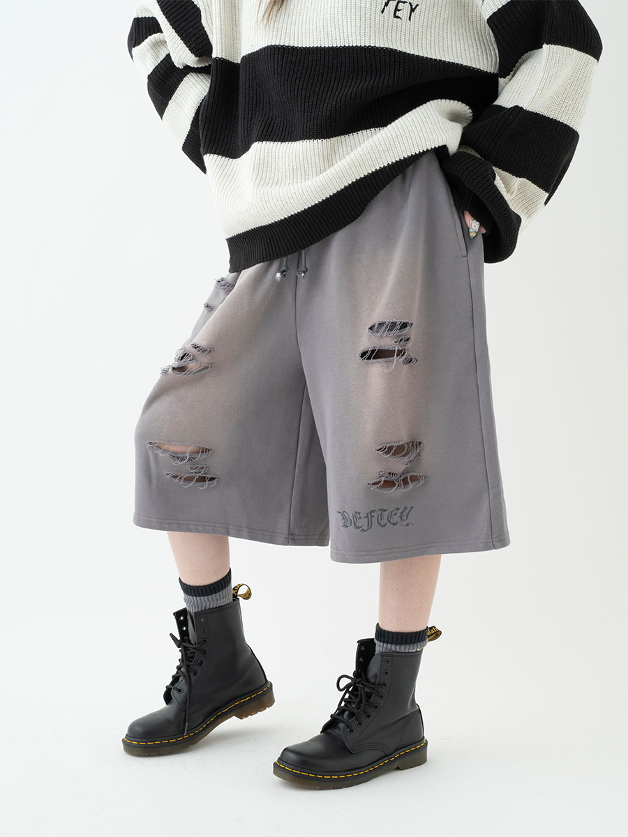 ダメージスウェットハーフパンツ(グレー)