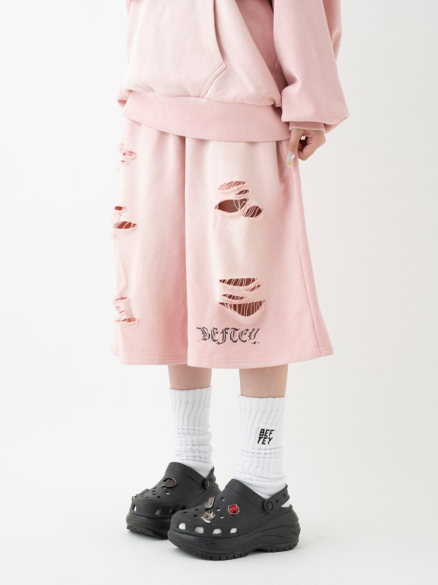 ダメージスウェットハーフパンツ(ピンク)