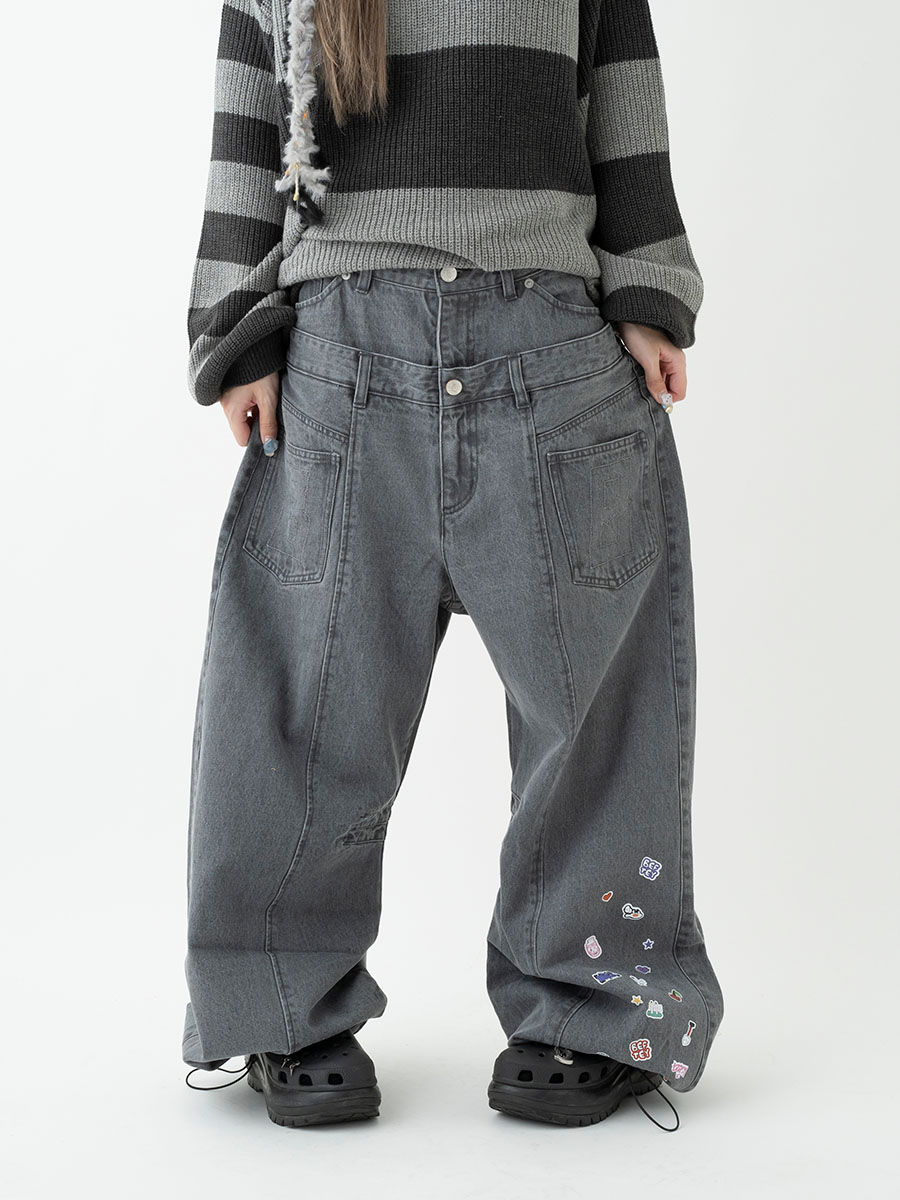 2inポケットBIGデニムパンツ(グレー)