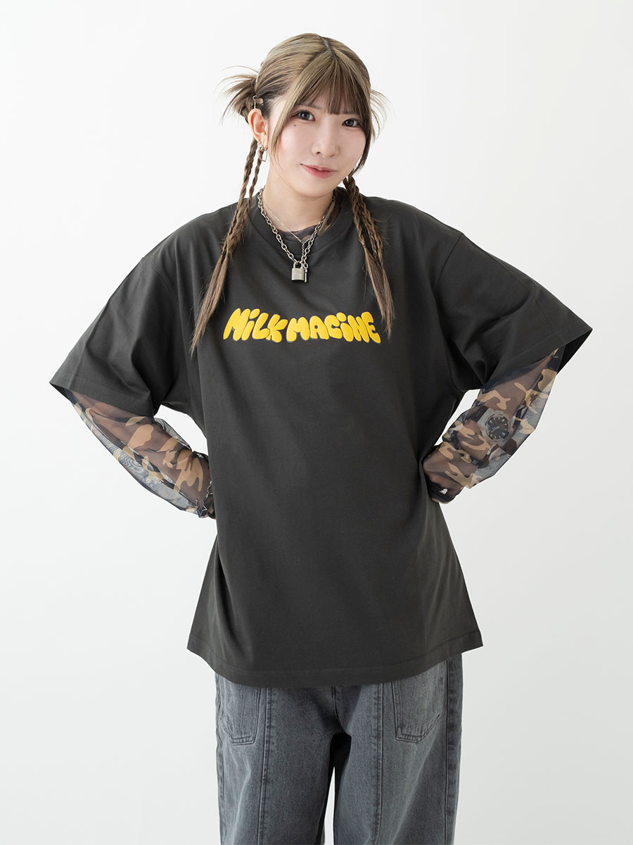 ウシくんポラロイドTシャツ(ブラック×モノクロ)